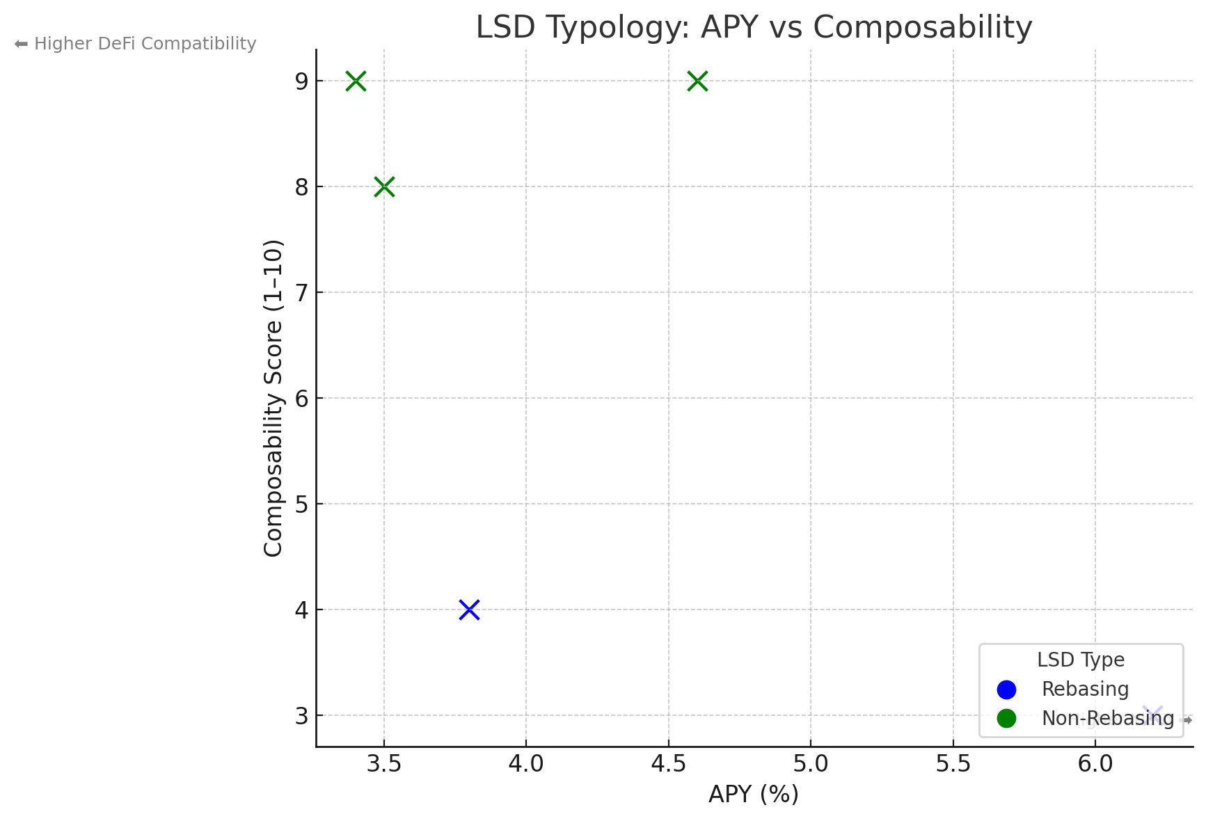 - Rebasing LSDs often deliver similar or higher APYs, but are less composable.
